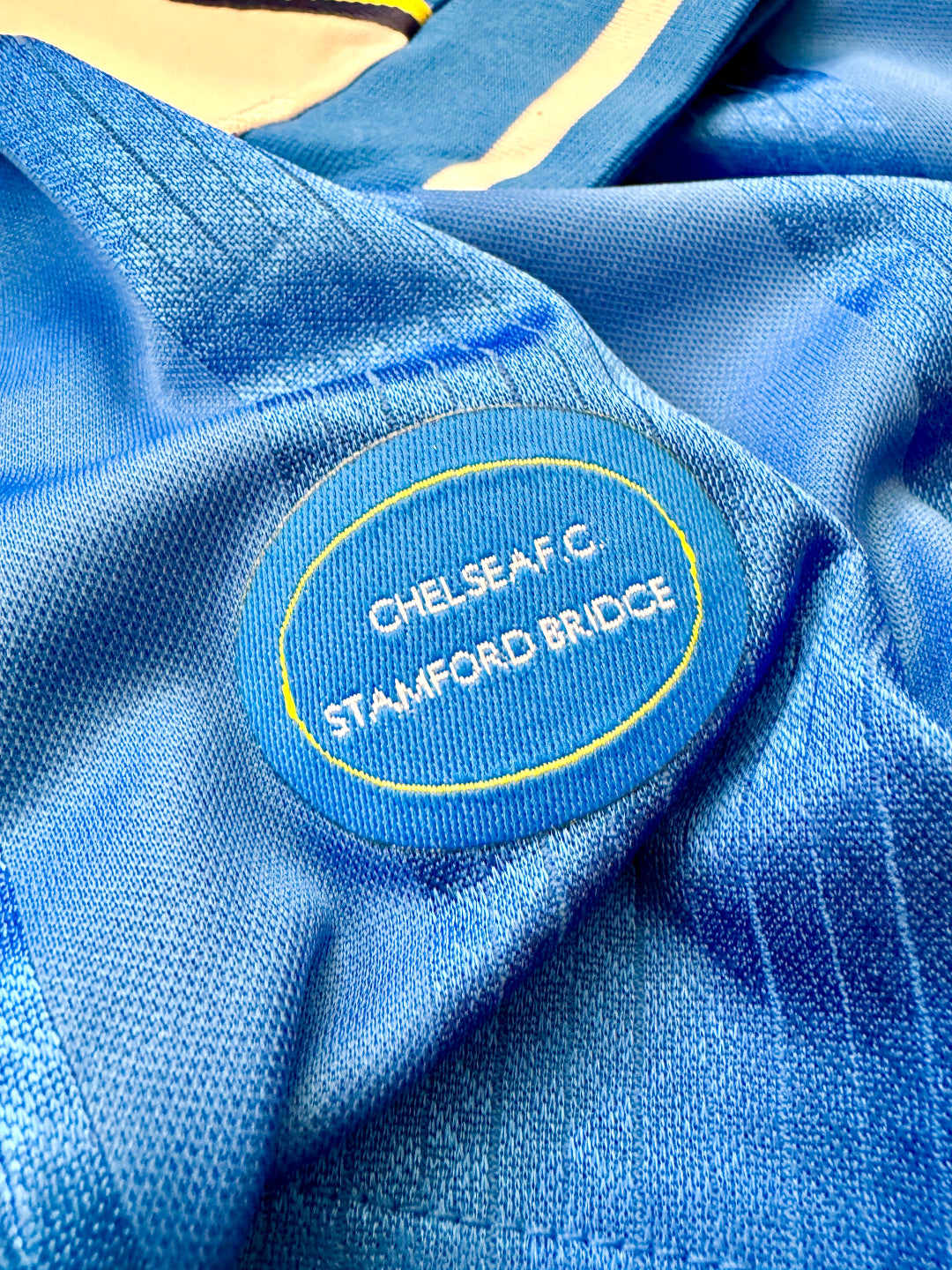 ¡Revive la era de Vialli con esta auténtica camiseta retro del Chelsea 1997-1999 manga larga! Este icónico jersey azul real con detalles en blanco y el escudo clásico bordado rinde homenaje al equipo que conquistó la Recopa de Europa y la Supercopa bajo el liderazgo de Gianluca Vialli, con un plantel estelar que incluía a Zola, Desailly y Di Matteo. La versión de manga larga, con su cuello polo y diseño clásico, captura la esencia del fútbol inglés que dominó en Wembley y marcó el inicio de una era dorada en Stamford Bridge.