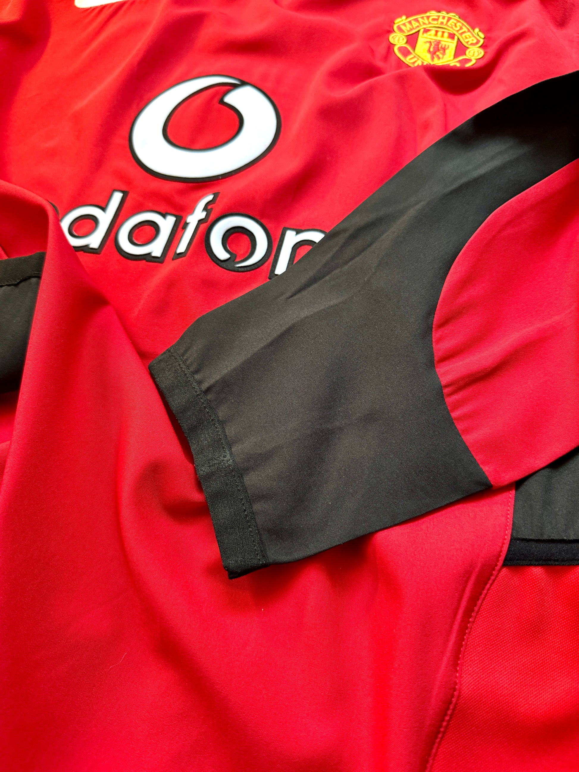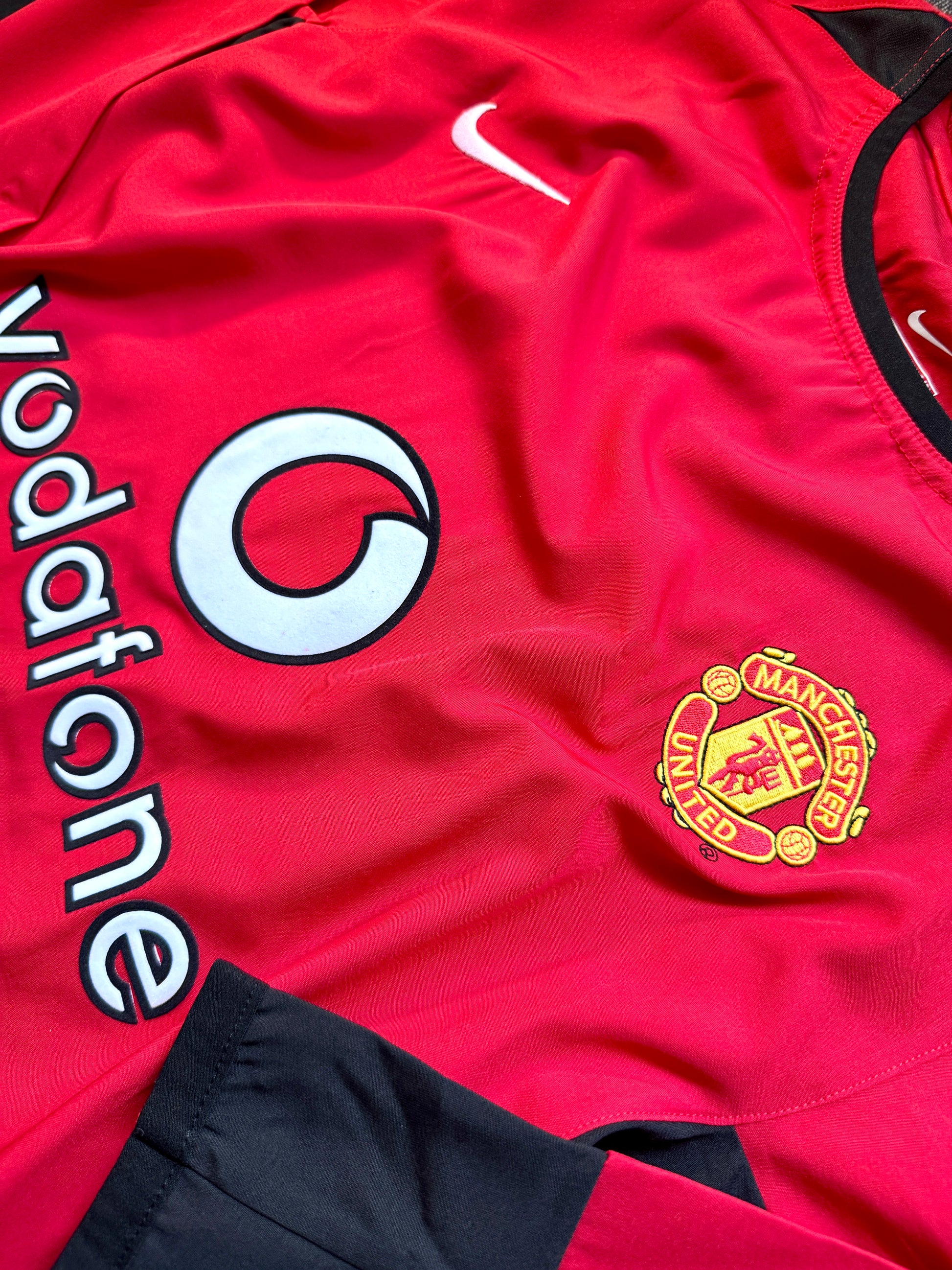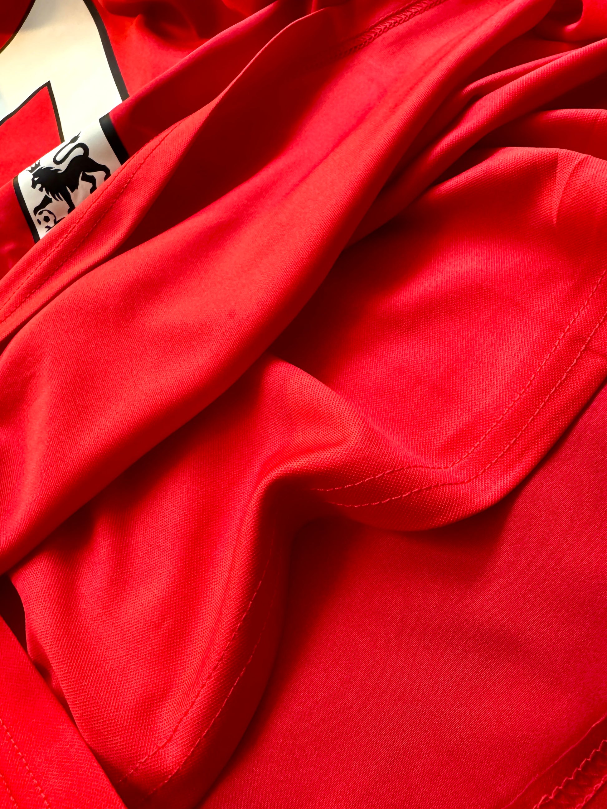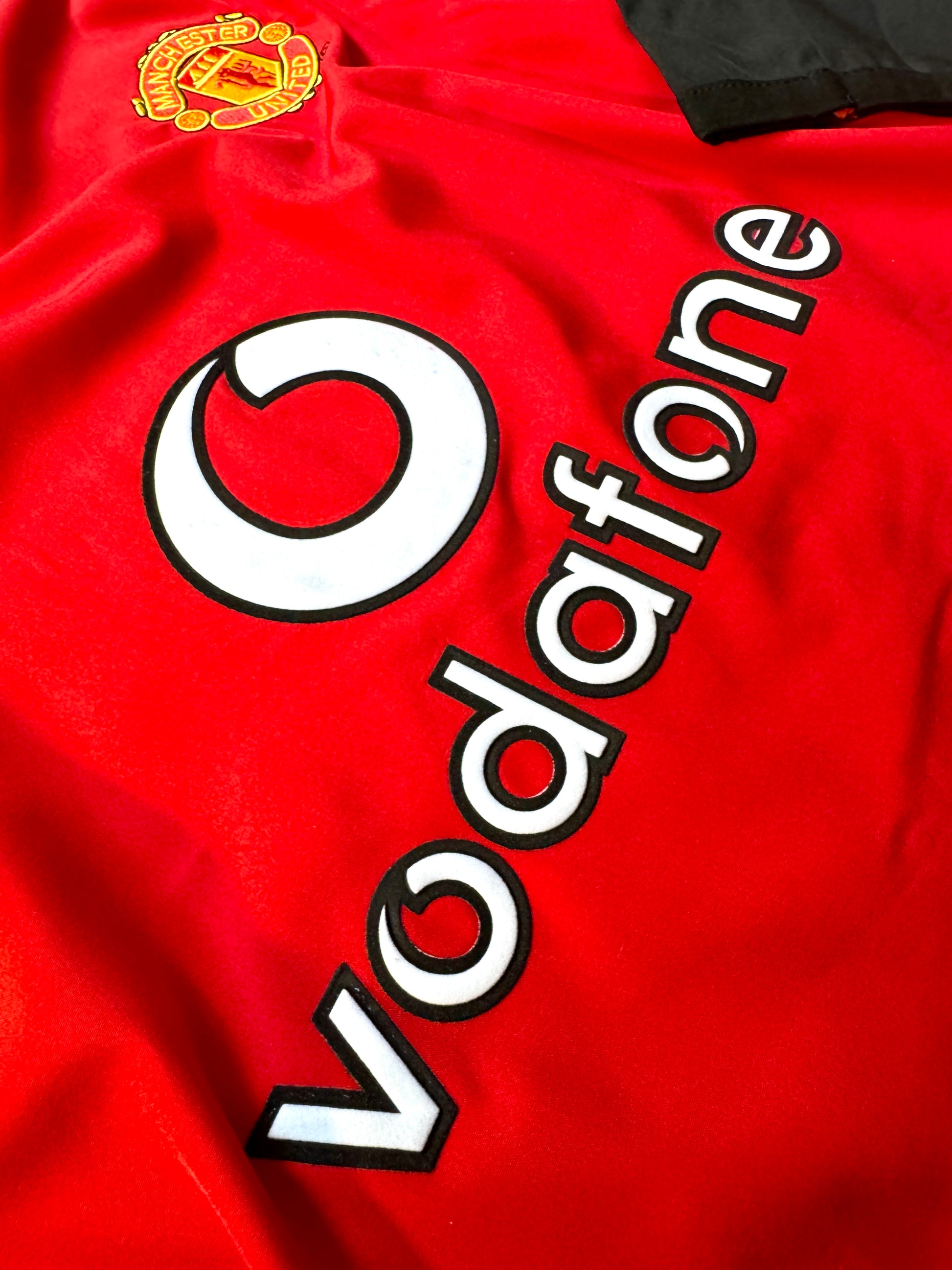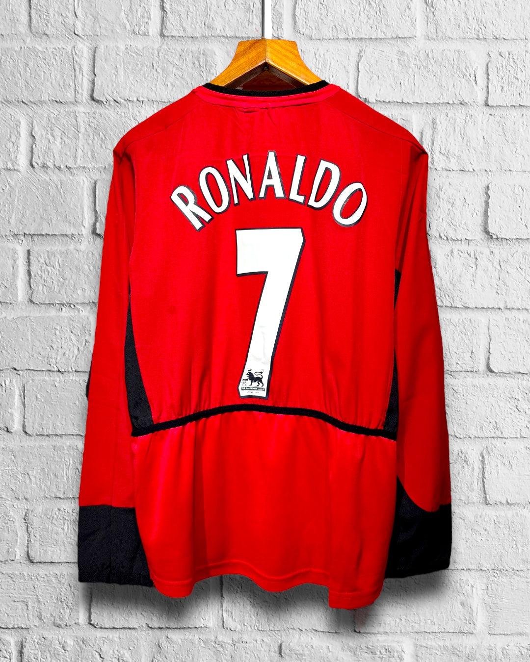 Este icónico jersey rojo con detalles en negro rinde homenaje a la etapa de Cristiano Ronaldo en sus primeros años con los Diablos Rojos, cuando comenzaba a deslumbrar al mundo con su talento. La versión de manga larga, con su característico cuello redondo y el emblemático escudo bordado, captura la esencia del United de Ferguson en su mejor época. Un must-have para coleccionistas y seguidores del fútbol inglés clásico.